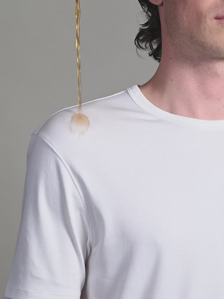 La Stain Repellent Tee combina algodón Pima con tecnología repelente de líquidos para evitar manchas. Esta playera es increíblemente suave y duradera, con elasticidad y un acabado anti-pilling que conserva su forma.